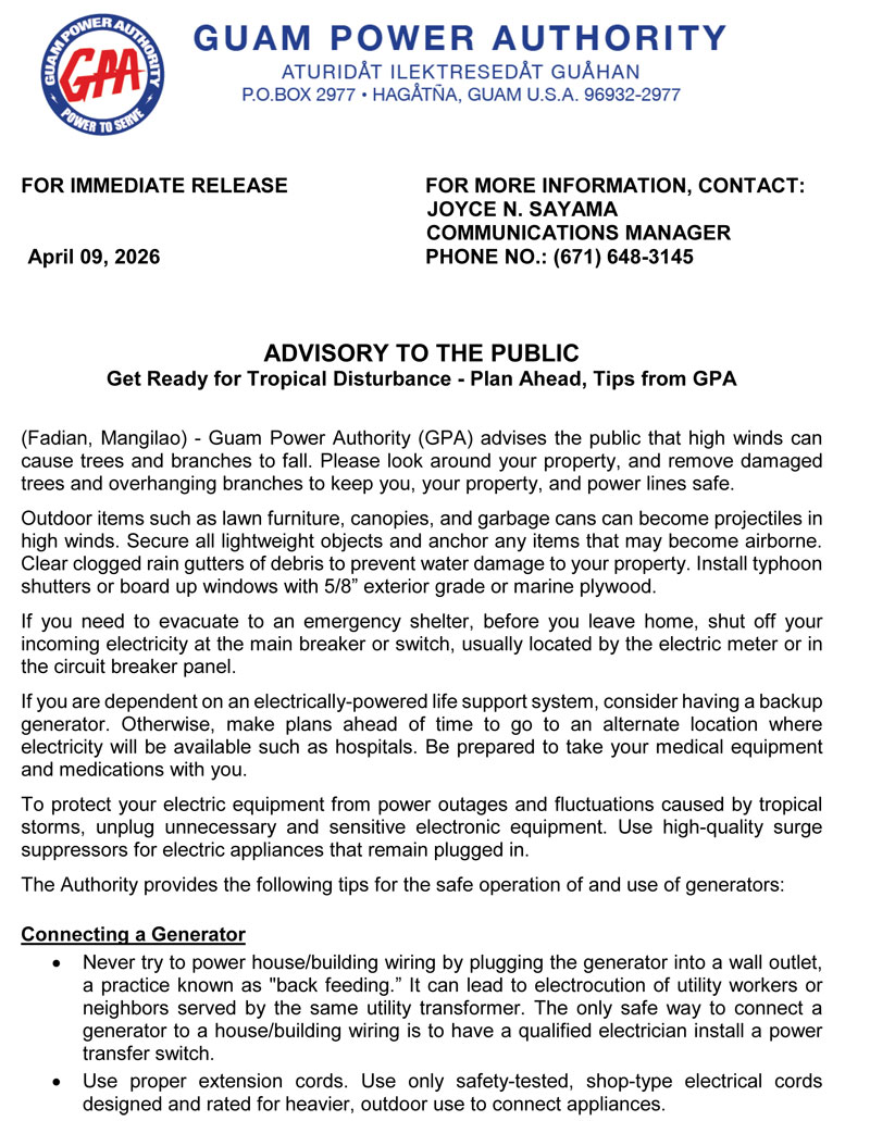Advisory to the Public - Get Ready for Tropical Disturbance - Plan Ahead, Tips from GPA 20260409 (final)