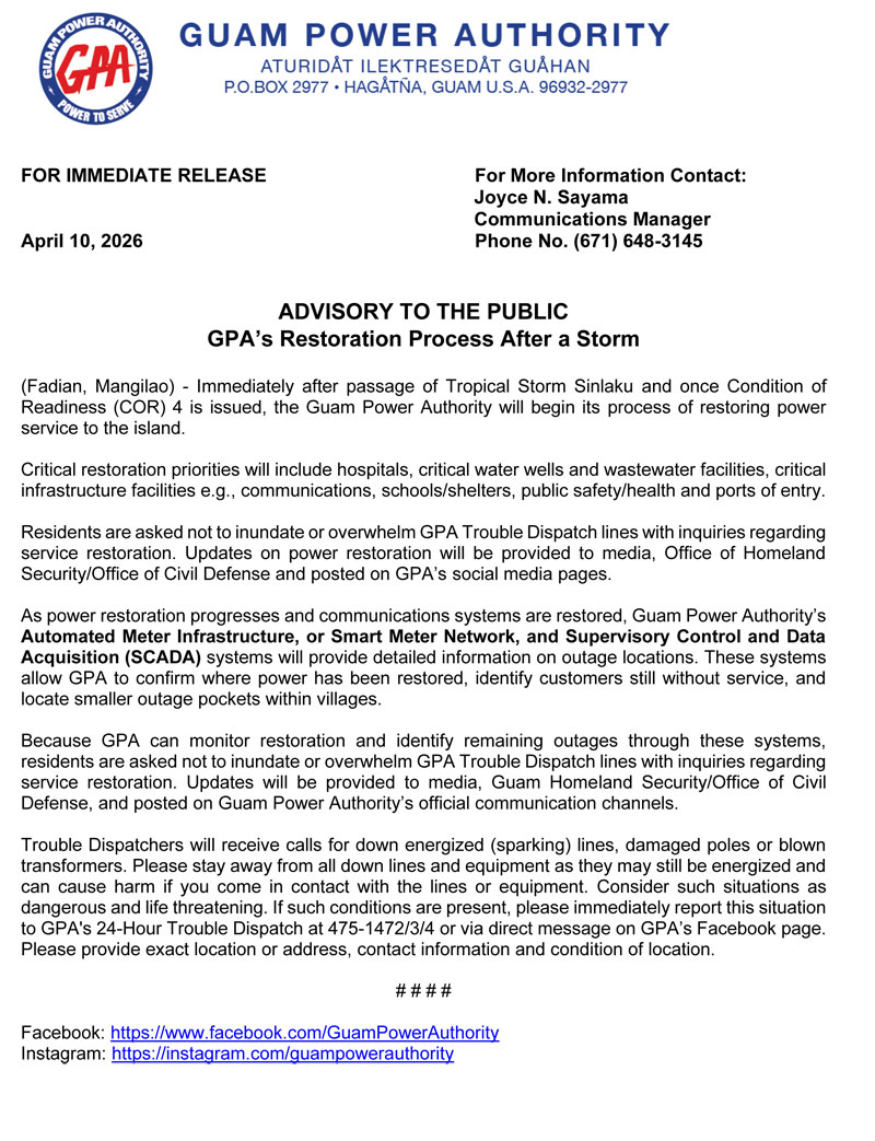 Advisory to the Public - GPA’s Restoration Process After a Storm (final)