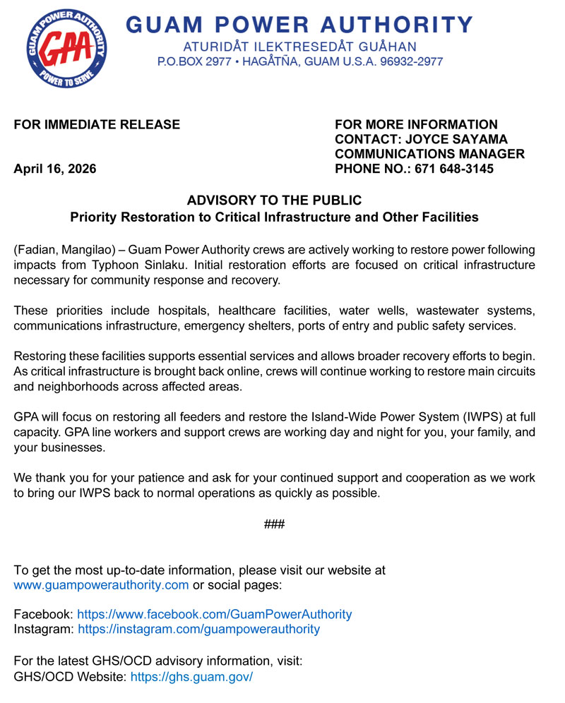 Advisory to the Public - Priority Restoration to Critical Infrastructure and Other Facilities