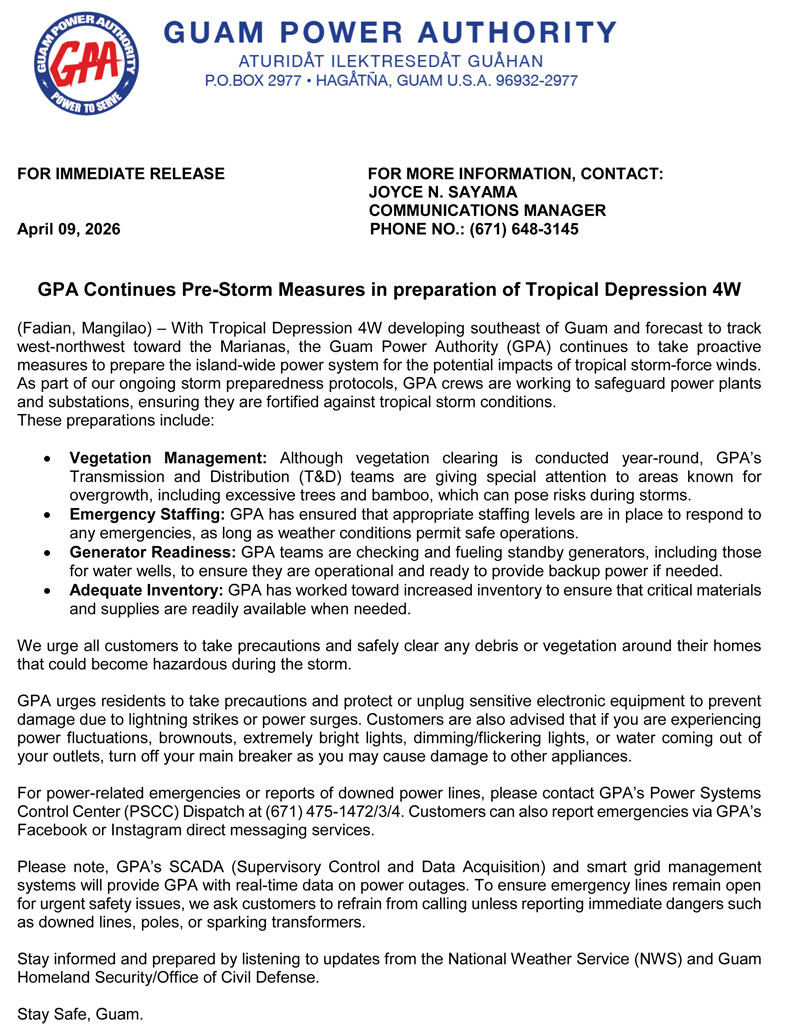 GPA Media Release - GPA Continues Pre-Storm Measures in preparation of Tropical Depression 4W (final)