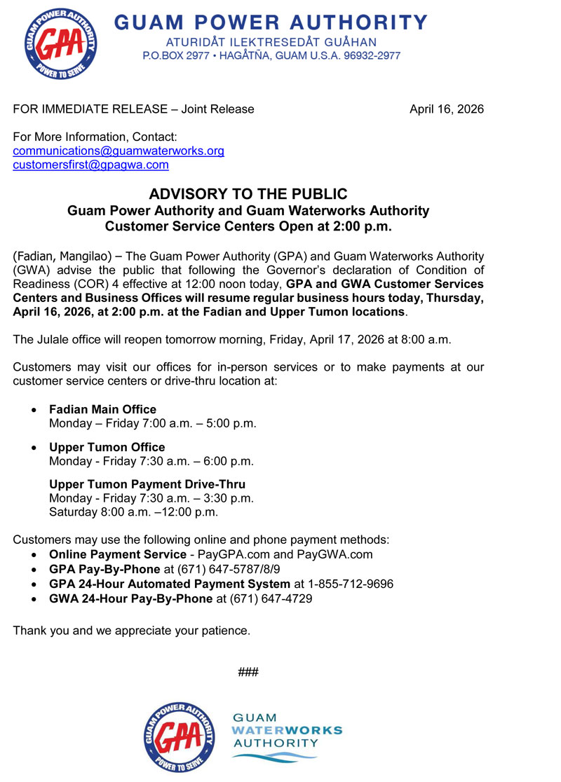 GPWA Joint Advisory: GPWA Customer Service Centers Open on Thursday, April 16, 2026 at 2:00 p.m.